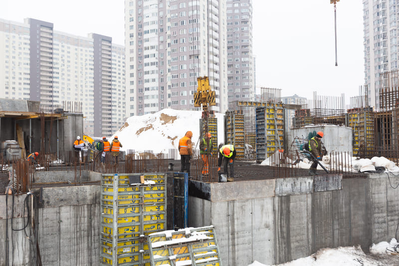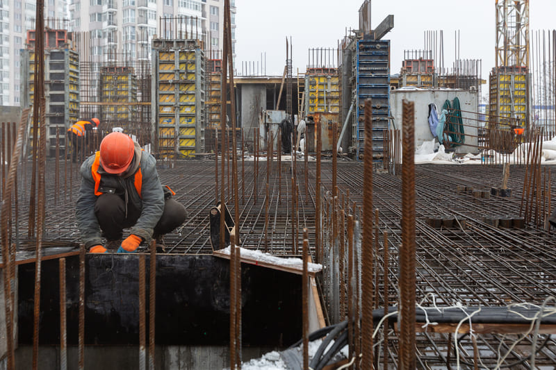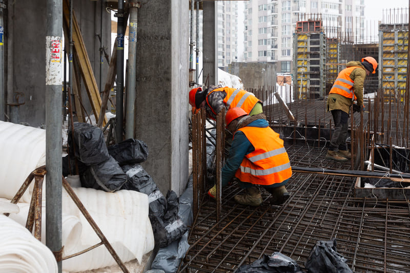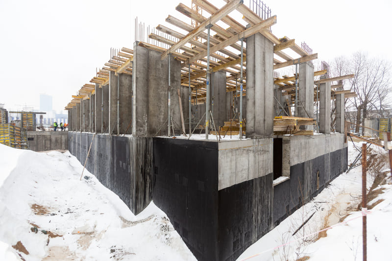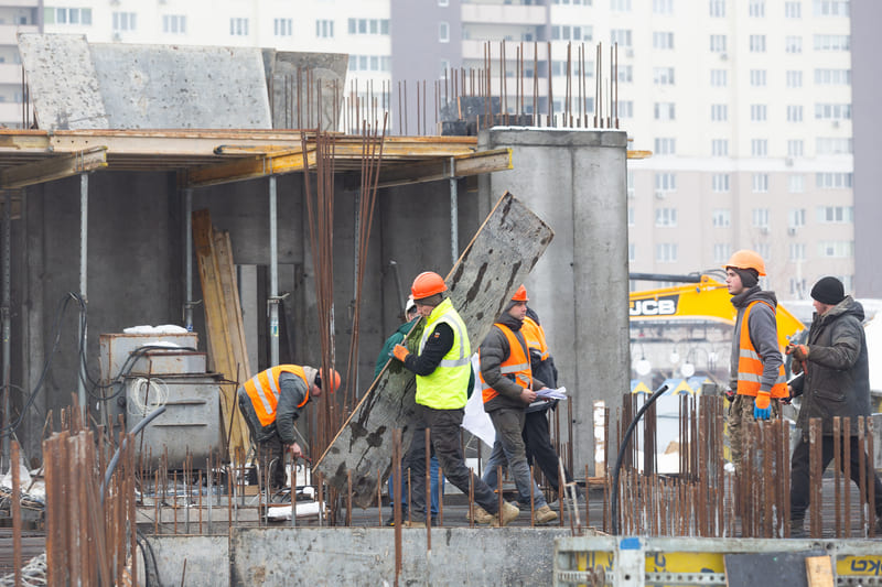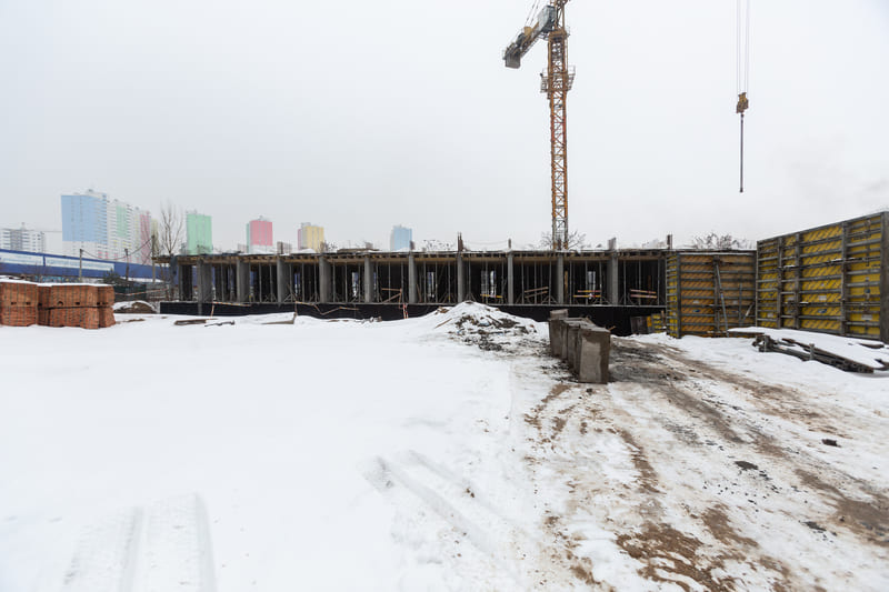 Завершено влаштування вертикальних та горизонтальних монолітних конструкцій каркаса до відмітки 0,000 секції 1, виконуються роботи з улаштування 1-го поверху (готовність — 85%).