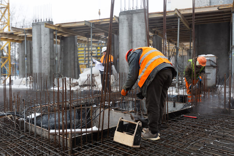 Влаштування вертикальних та горизонтальних монолітних конструкцій каркаса до відмітки 0,000 секції 2.1 – виконання 90%, розпочаті роботи з улаштування 1-го поверху (готовність — 10%).