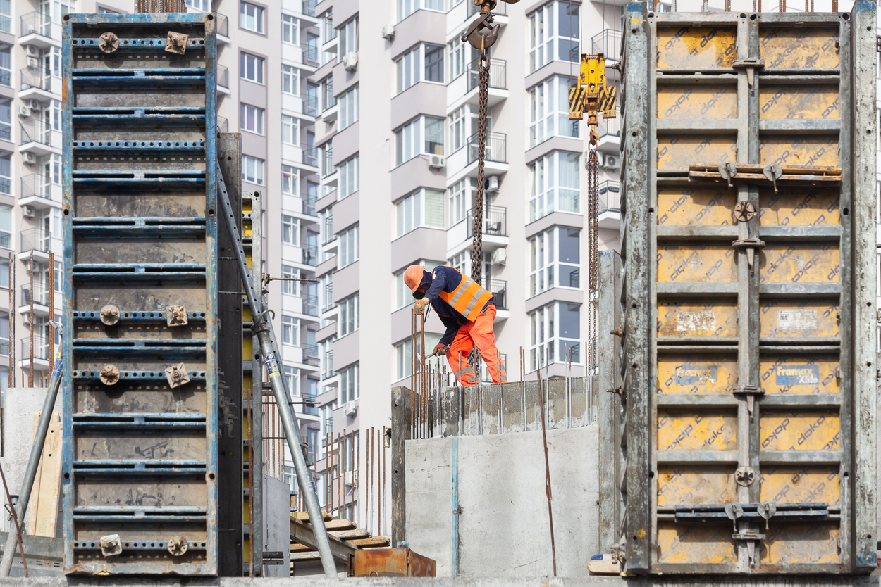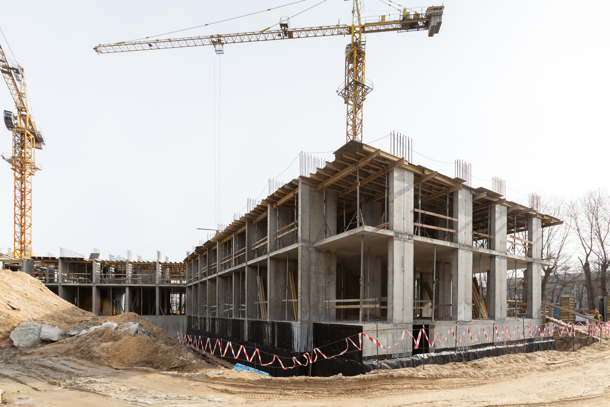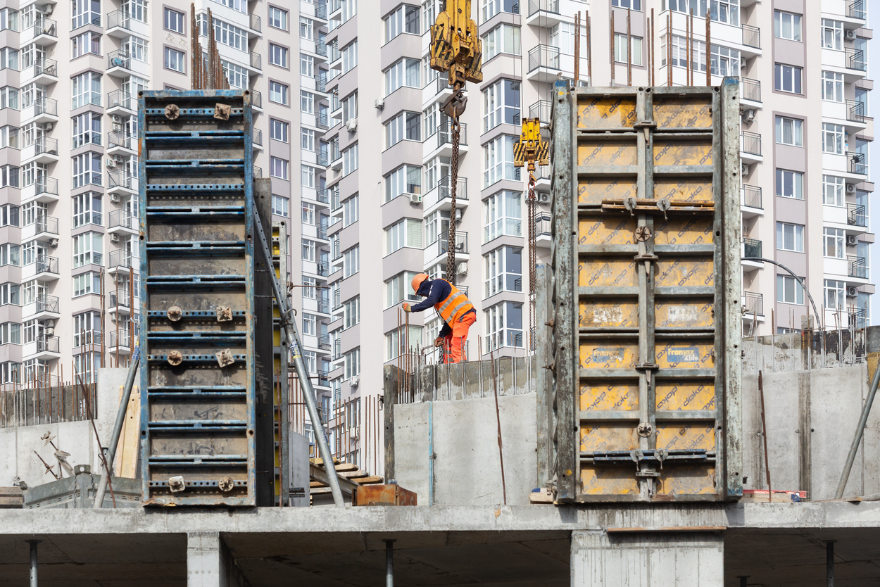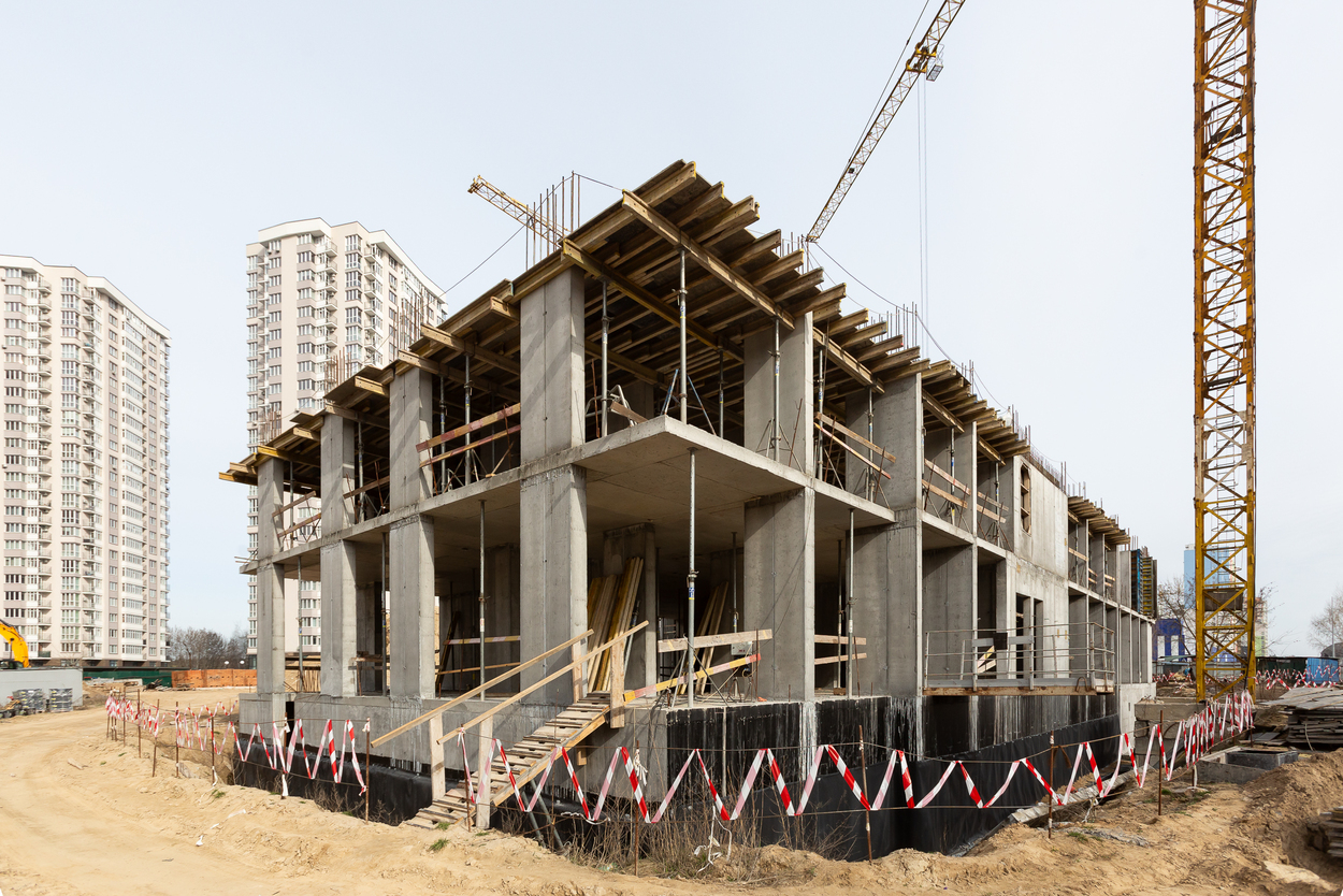 Влаштування вертикальних та горизонтальних монолітних конструкцій каркаса до відмітки 0,000 секції 2.1 – виконання 100%, виконуються роботи з улаштування 2-го поверху.