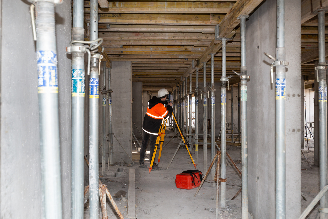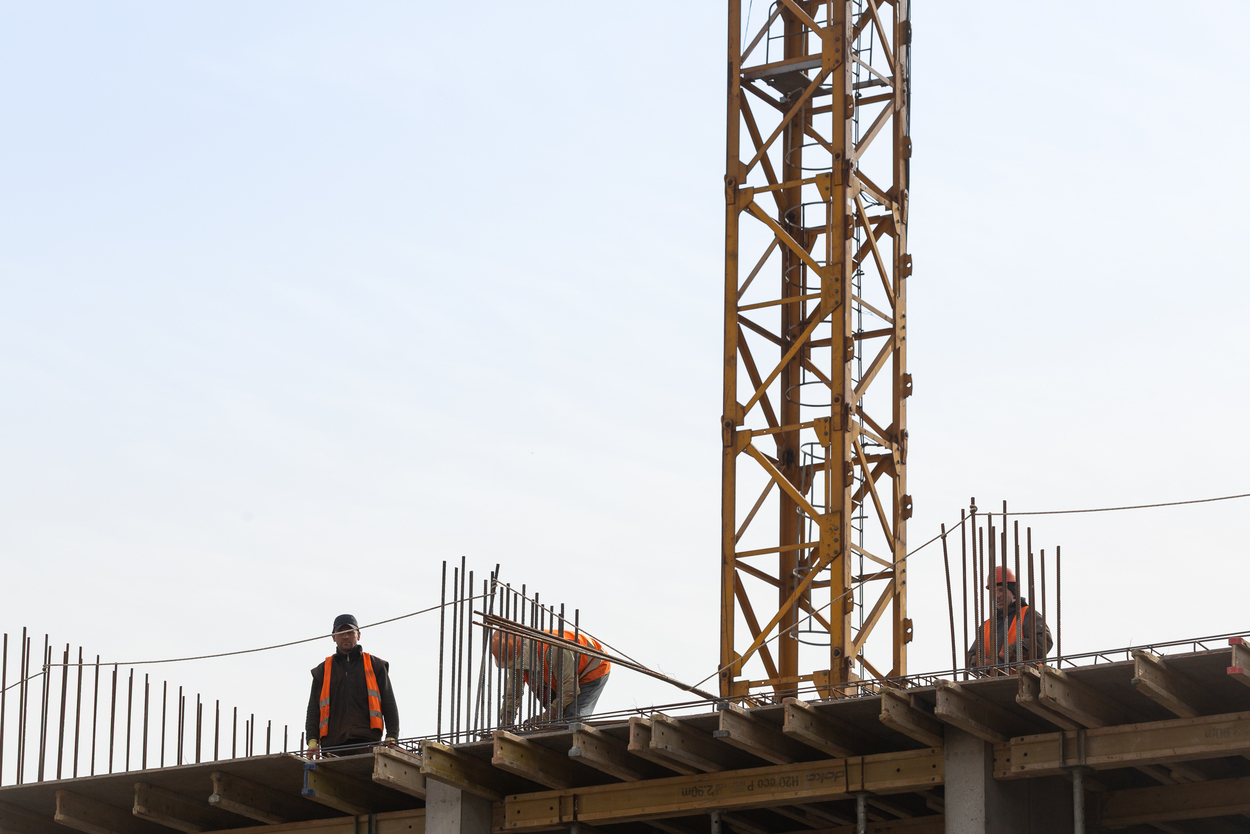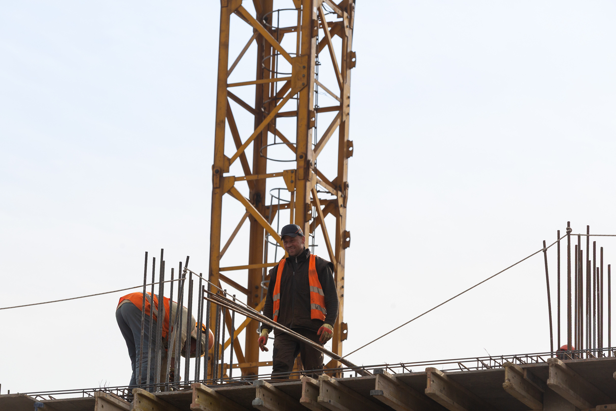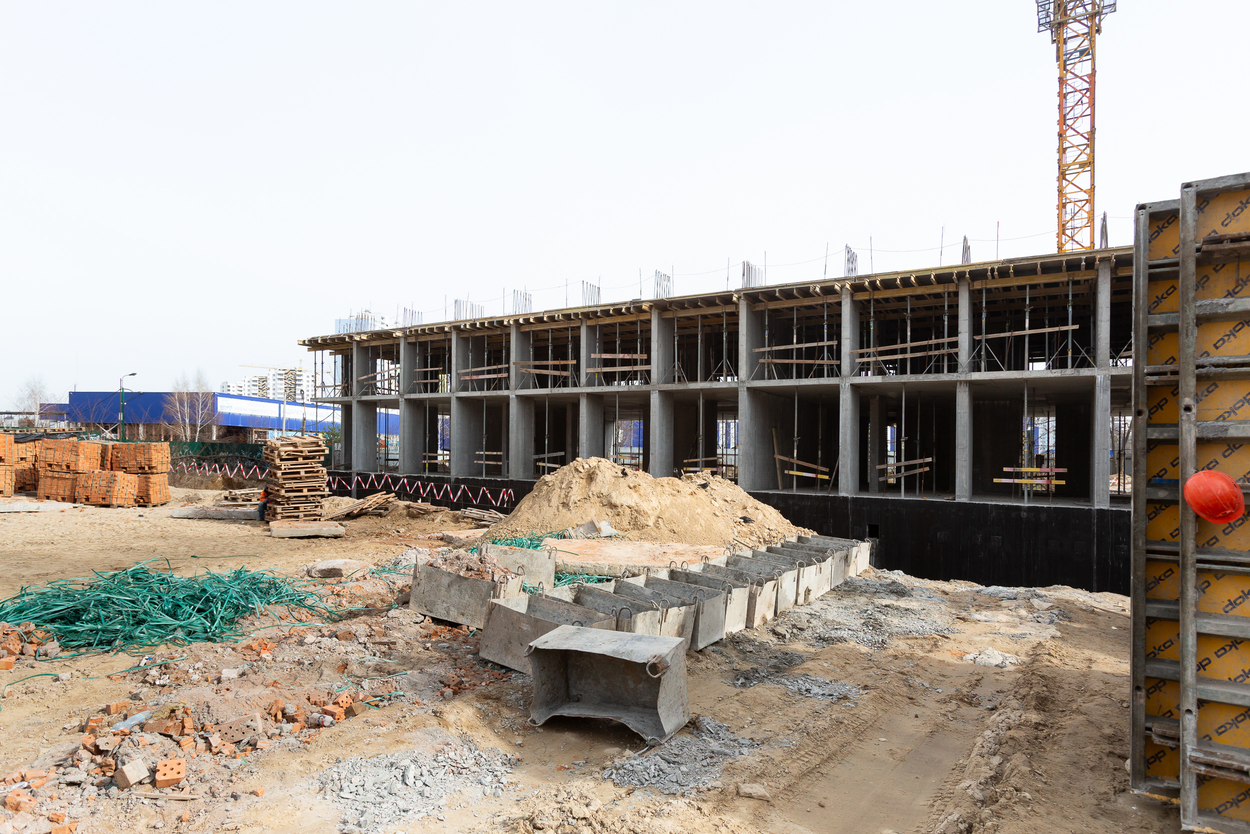 Завершено влаштування вертикальних та горизонтальних монолітних конструкцій каркаса до відмітки 0,000 секції 1, виконуються роботи з улаштування 2-го поверху.