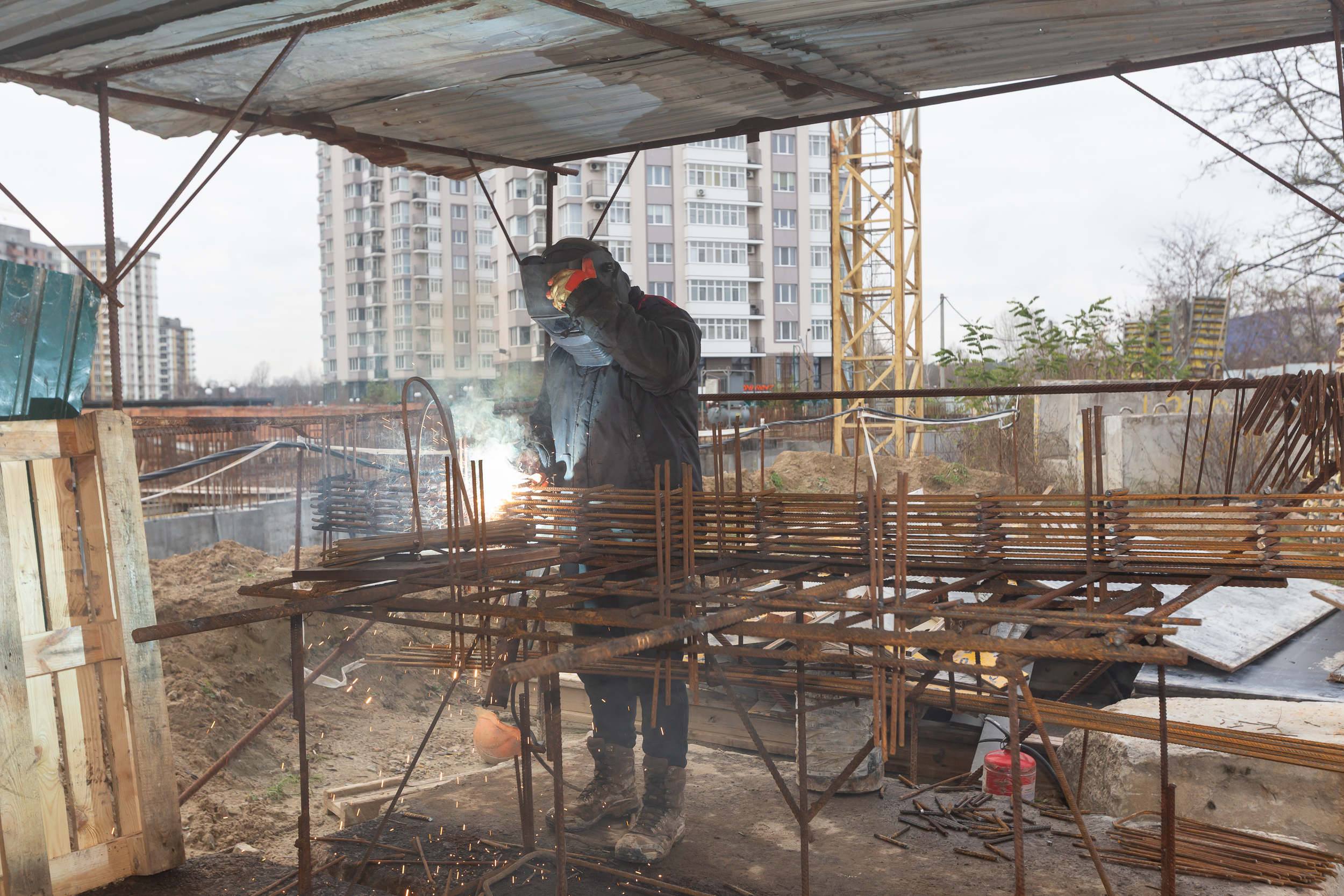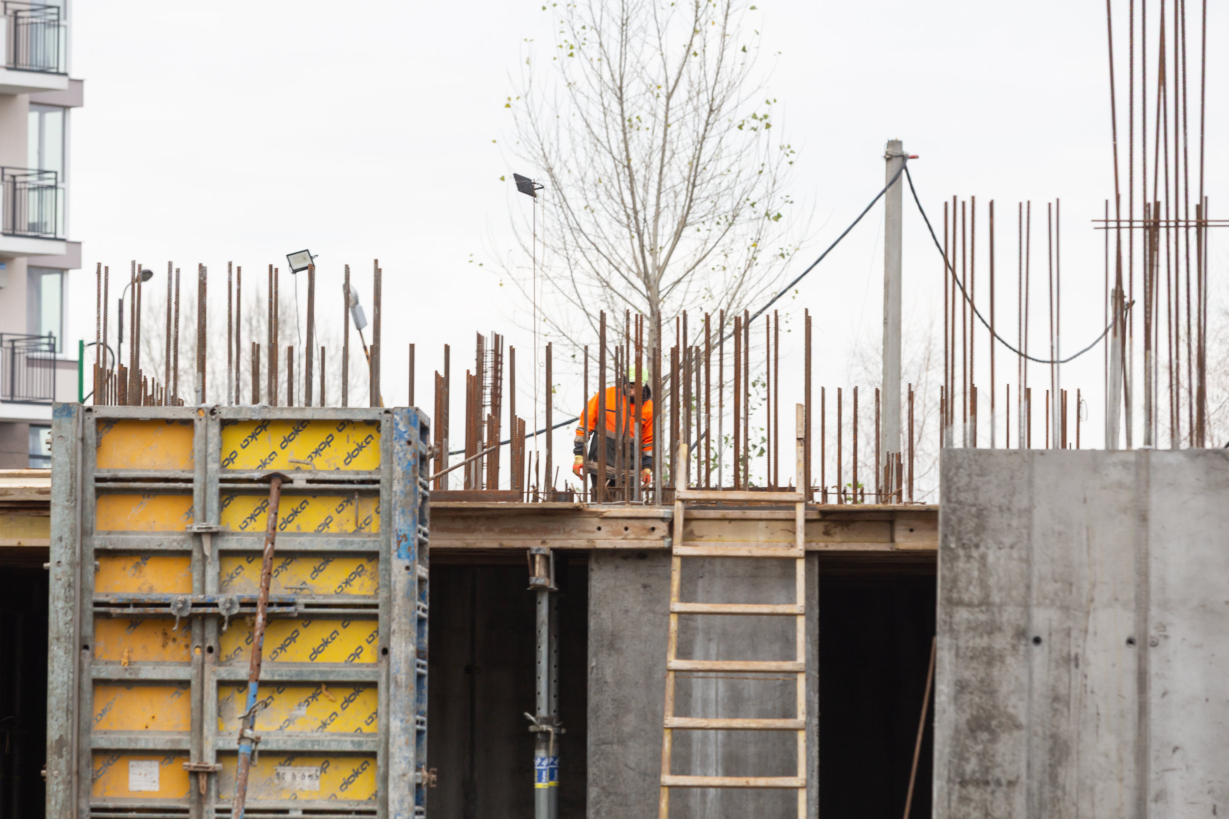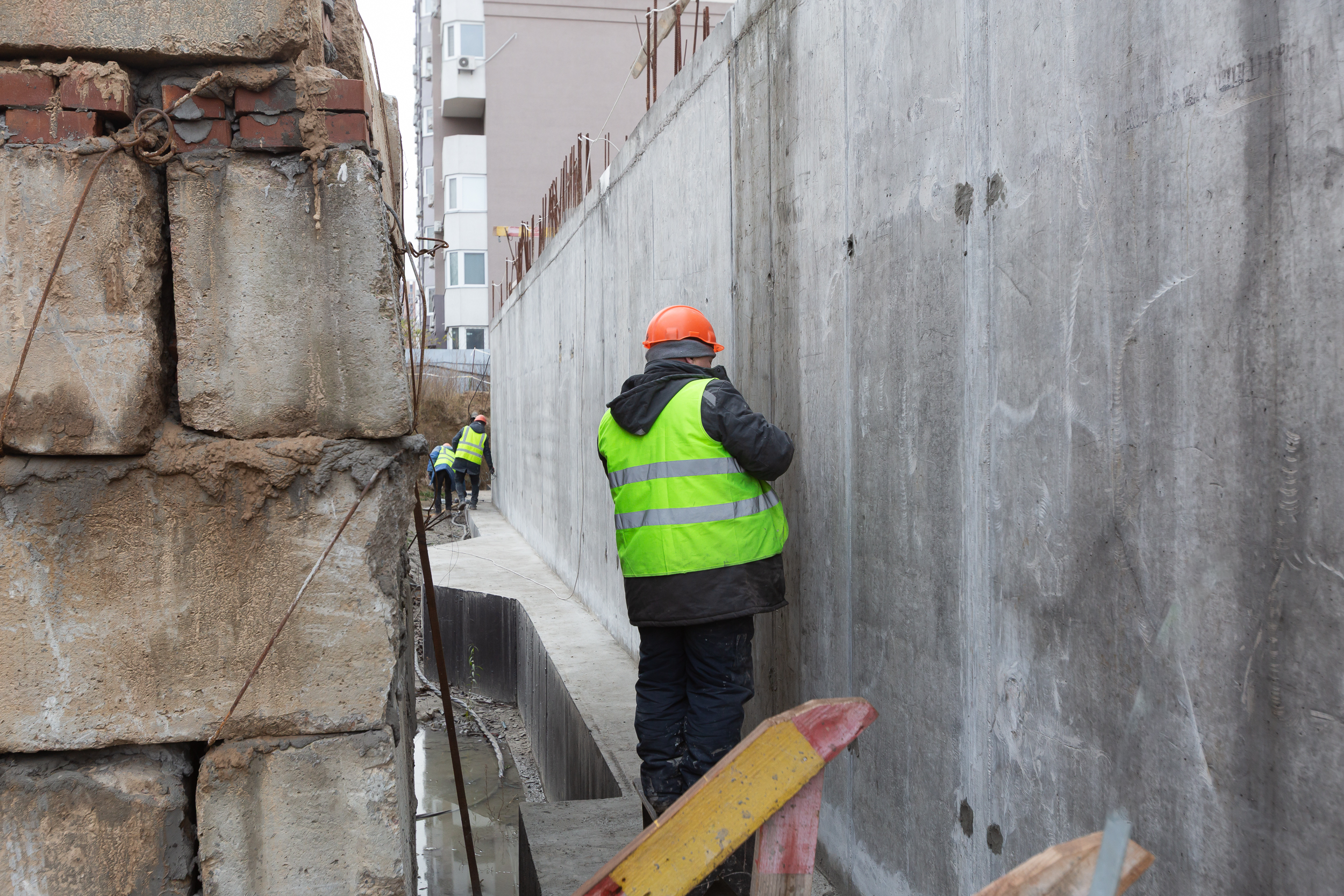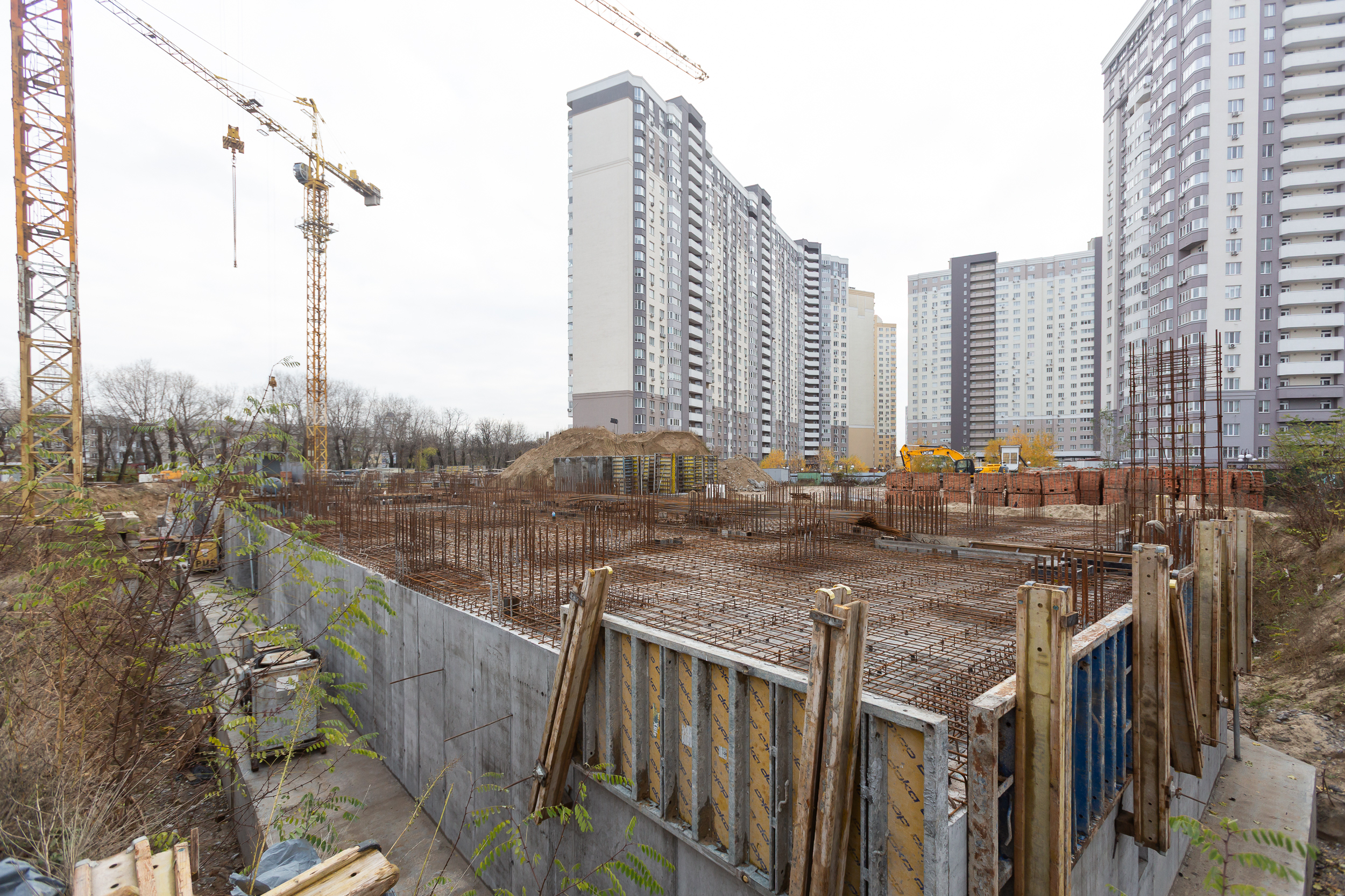 Виконується влаштування вертикальних та горизонтальних монолітних конструкцій в секціях 2.2, 2.1, 1. Стартує комплекс робіт з утеплення та гідроізоляції стін паркінгу.