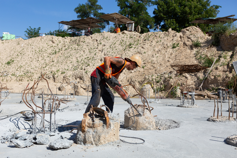 Виконане бетонування фундаментної плити секції № 1. Виконується підготовка до влаштування ростверку секції 2.1. Розпочато влаштування вертикальних монолітних конструкцій вище відмітки 0,000 секції 2.2.
