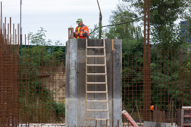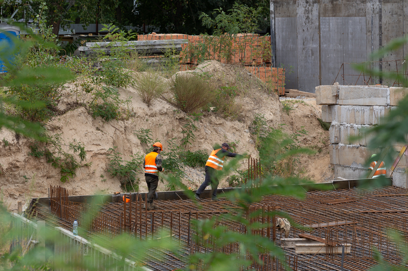 Виконане бетонування фундаментної плити секції № 1. Виконується підготовка до влаштування ростверку секції 2.1. Розпочато влаштування вертикальних монолітних конструкцій вище відмітки 0,000 секції 2.2.